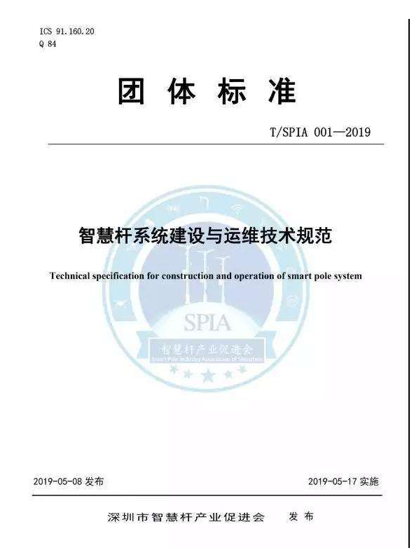 由中電科新型智慧城市研究院有限公司、深圳市洲明科技股份有限公司、華為技術(shù)有限公司等多家單位參編的團體標準《智慧桿系統(tǒng)建設(shè)與運維技術(shù)規(guī)范》,經(jīng)深圳市智慧桿產(chǎn)業(yè)促進會組織審查,批準發(fā)布,編號為T/SPIA 001—2019,自2019年5月17日起正式實施。